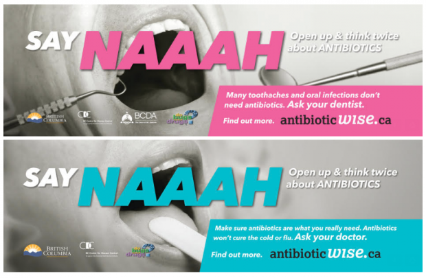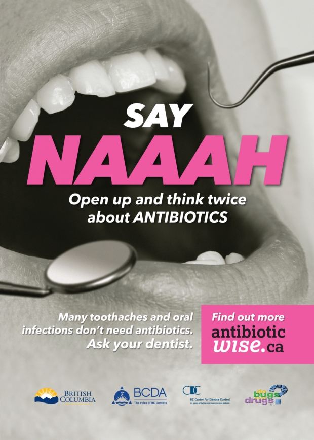 We have teamed up with Antibotic Wise and the BC Centre for Disease Control on their "Say NAAAH!" Campaign. It is important to only use antibiotics when they are needed. While antibiotics are warranted for some dental procedures, many toothaches and oral infections do not require antibiotics. However, based on your procedure and medical history, your dentist may recommend an antibiotic. Always let your dentist know about any medical conditions or changes to your health. In addition, antibiotics do not work for viruses like the flu. These two campaigns have been getting high visibility on the Vancouver transit platforms and in buses! We have also created several videos.